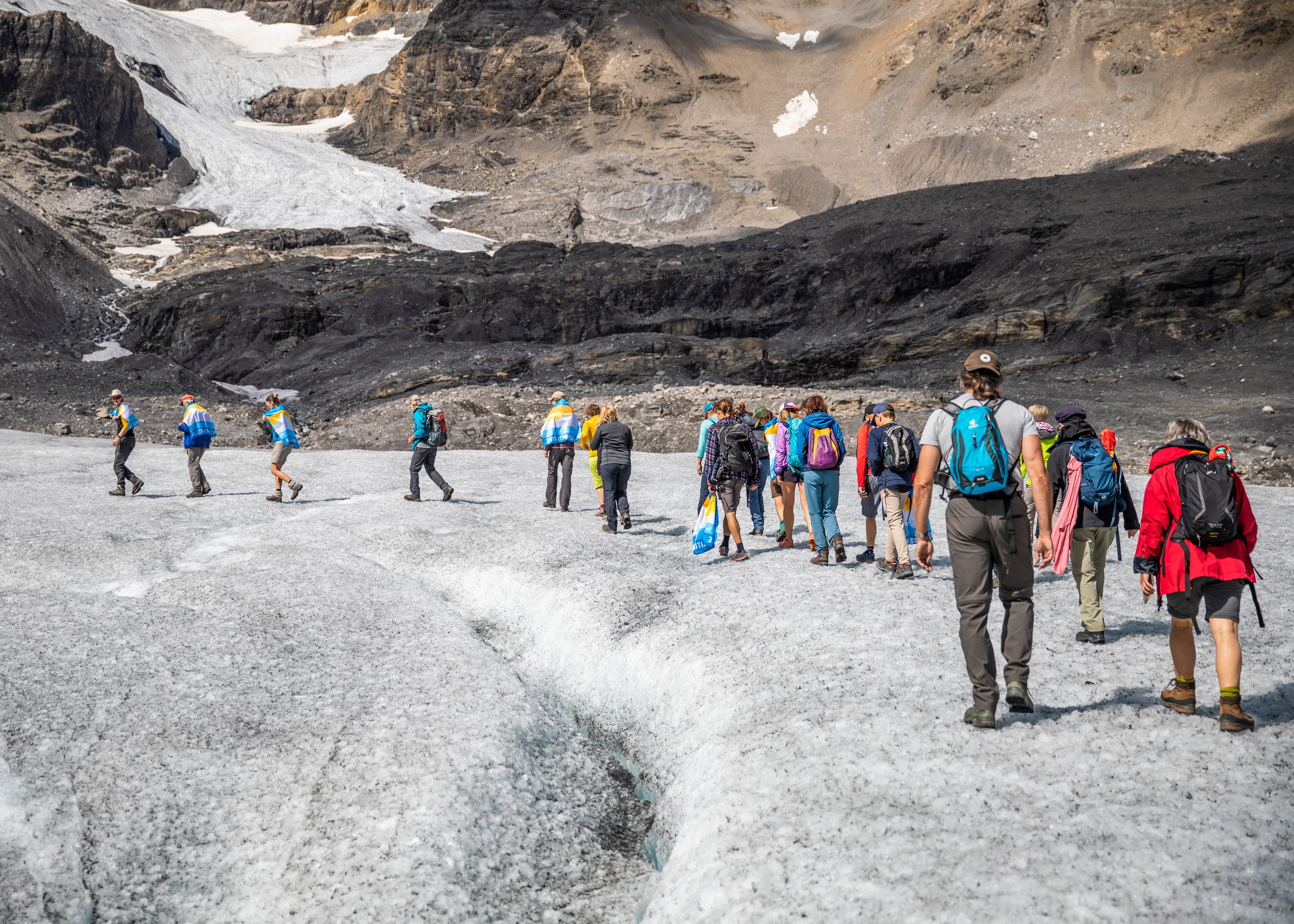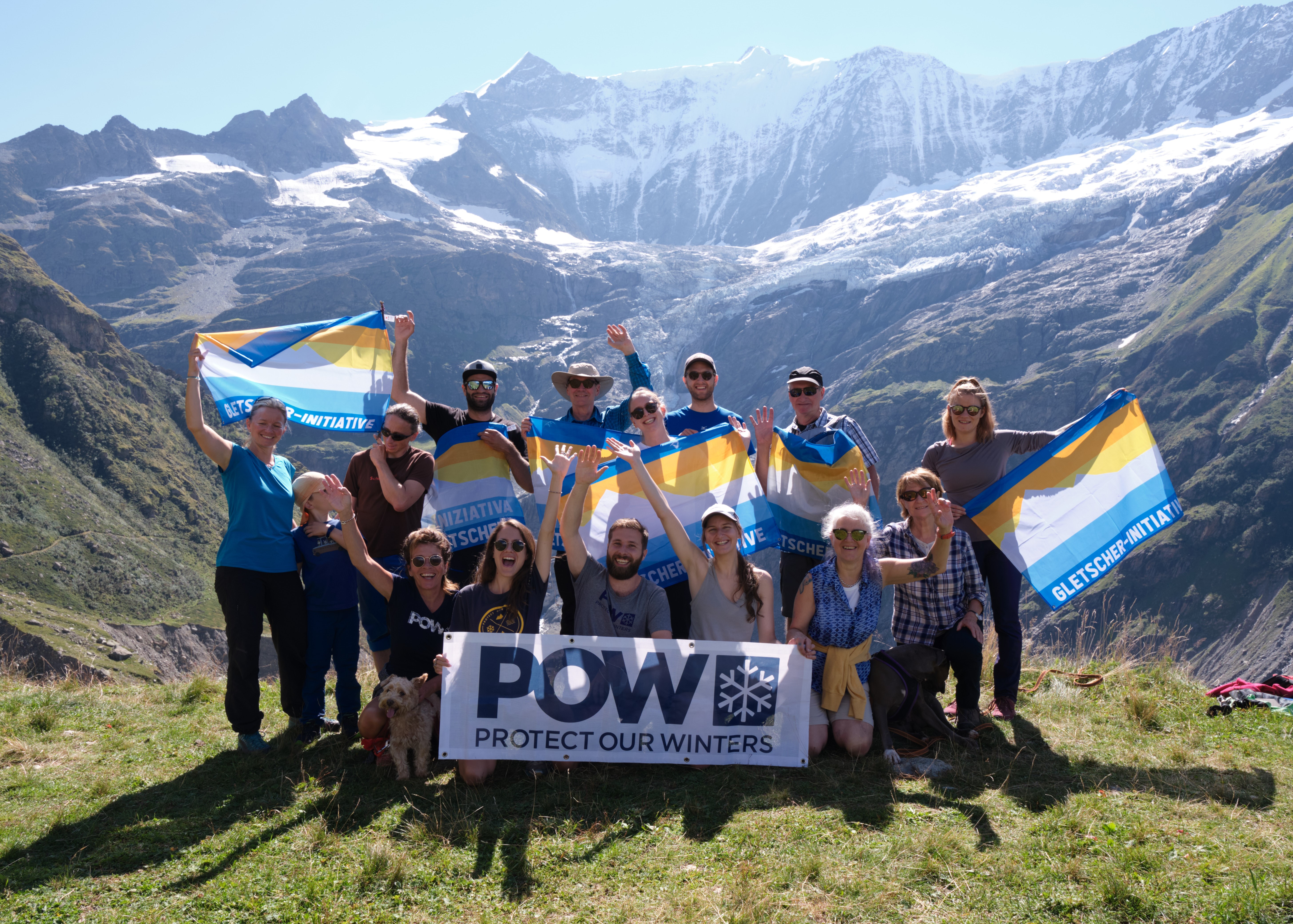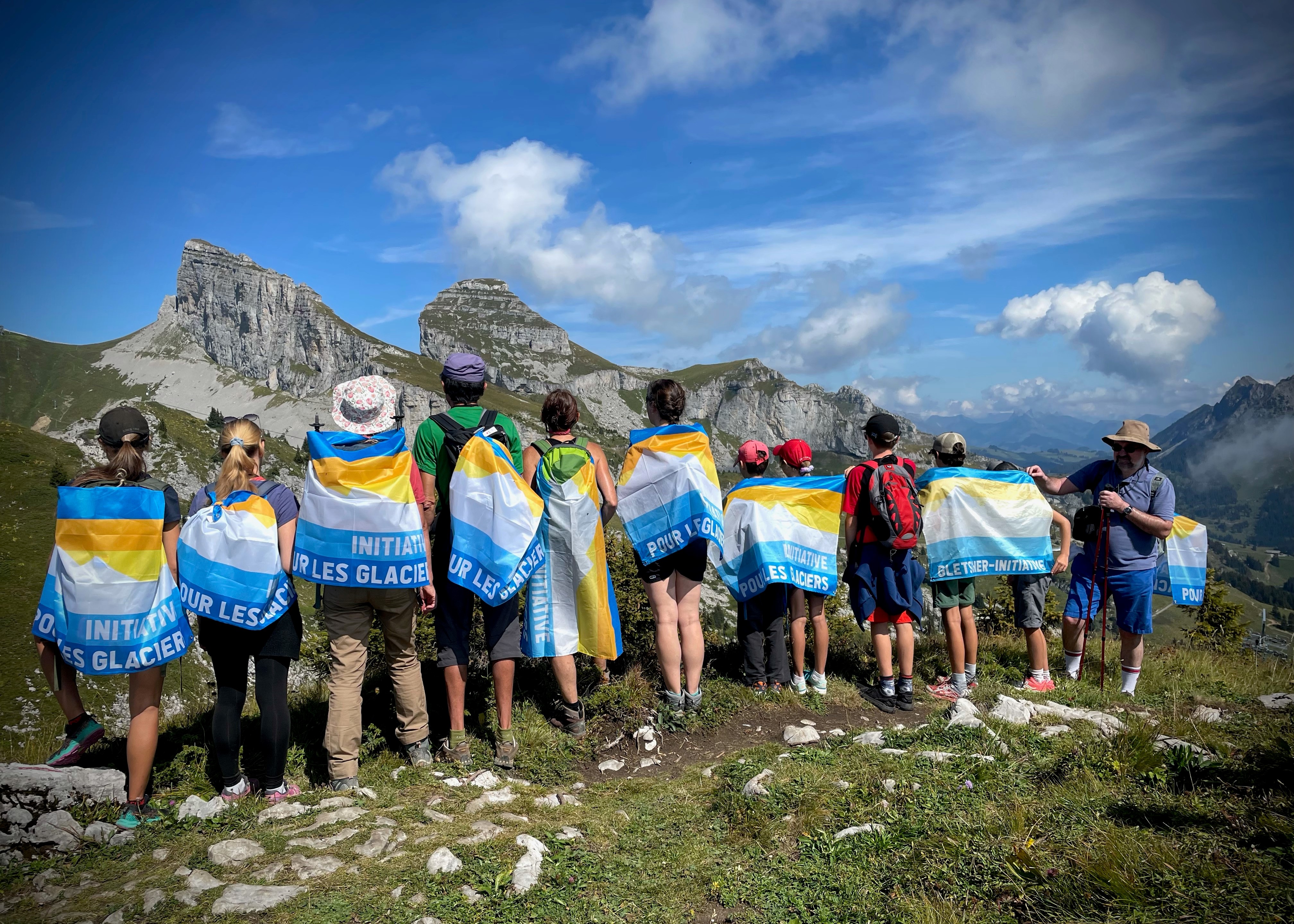 Für den Schutz unseres Alpenlandes ist wirksamer Klimaschutz zentral. Mit dieser Botschaft sind am 12. September über 500 Menschen dem Ruf der Gletscher-Initiative gefolgt und haben sich mit bunten Fahnen auf eine von über zwanzig Wanderungen in der ganzen Schweiz begeben.