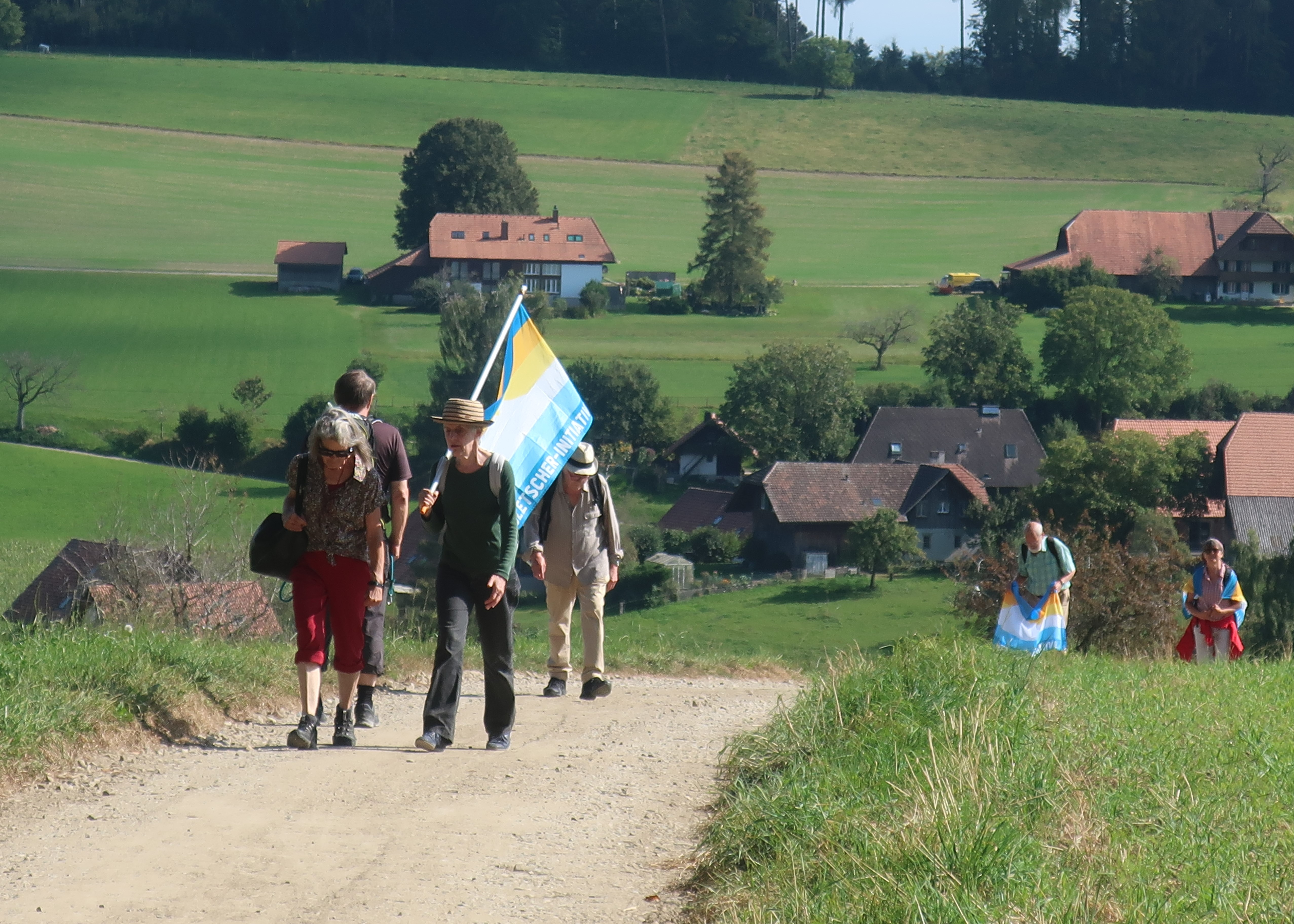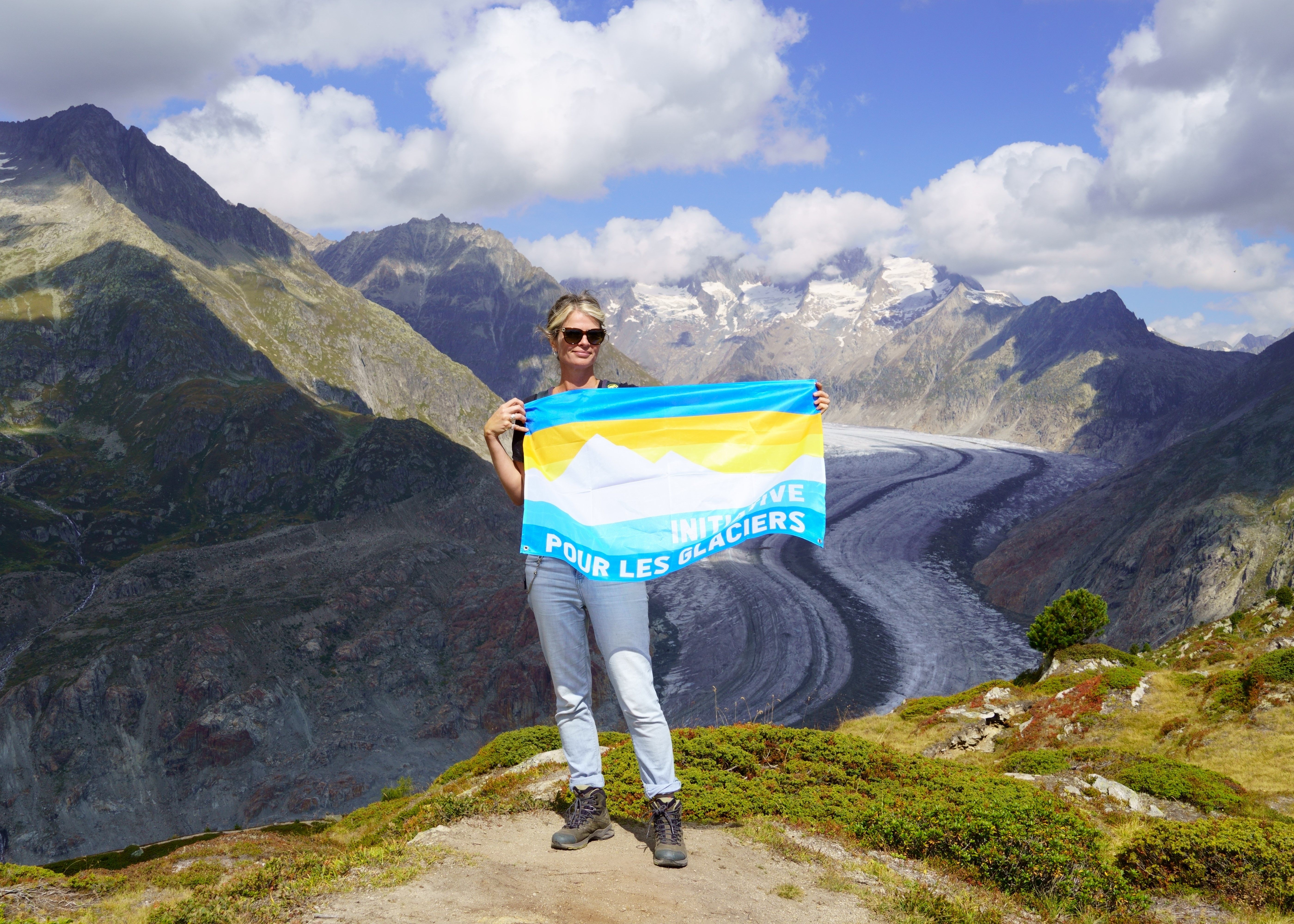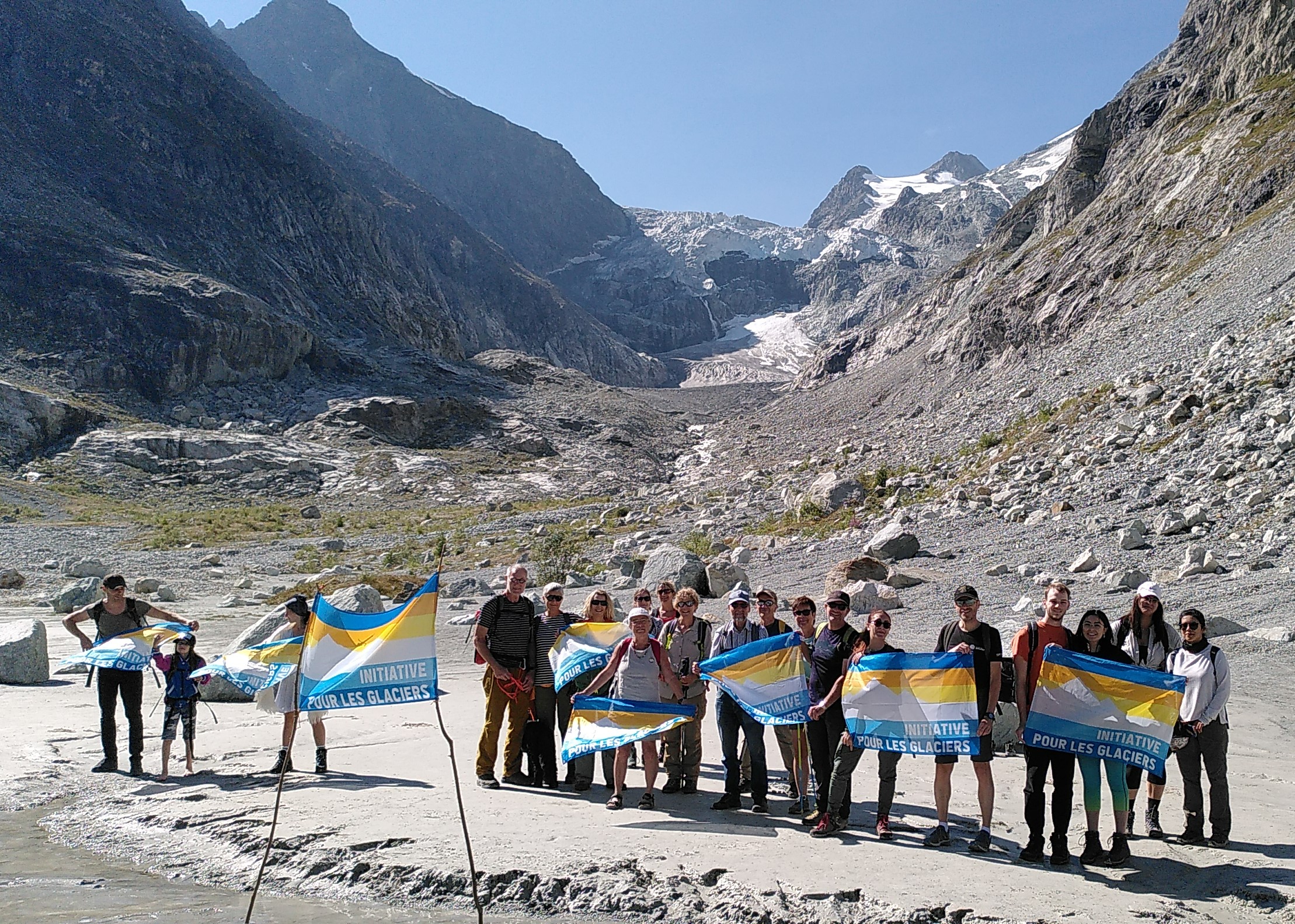 Für den Schutz unseres Alpenlandes ist wirksamer Klimaschutz zentral. Mit dieser Botschaft sind am 12. September über 500 Menschen dem Ruf der Gletscher-Initiative gefolgt und haben sich mit bunten Fahnen auf eine von über zwanzig Wanderungen in der ganzen Schweiz begeben.